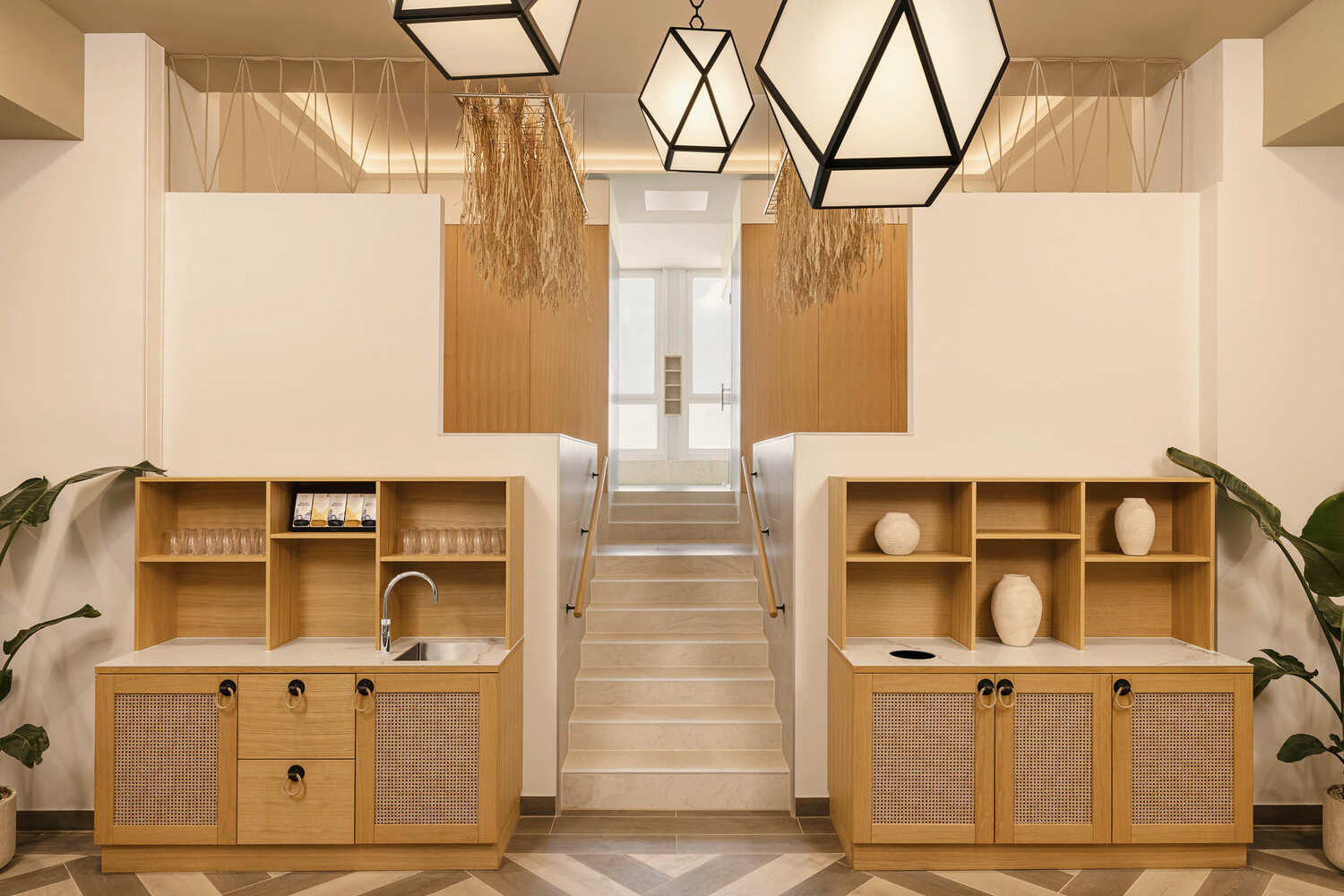 Beyond its interiors, Hilton Vienna Waterfront makes full use of its location. The outdoor pool sits within a green terrace, the Danube’s broad channel stretching beyond; in summer, it becomes less a hotel amenity than part of a larger riverside lifestyle. Guests can walk or cycle the paths of Danube Island, explore Leopoldstadt’s Prater park or markets, or retreat to the spa, where three saunas – one panoramic – frame the water as an essential part of the wellness experience. Even the palette here, creamy woods and soft neutrals, is drawn from the nearby Donau-Auen National Park, extending the outdoors inward.