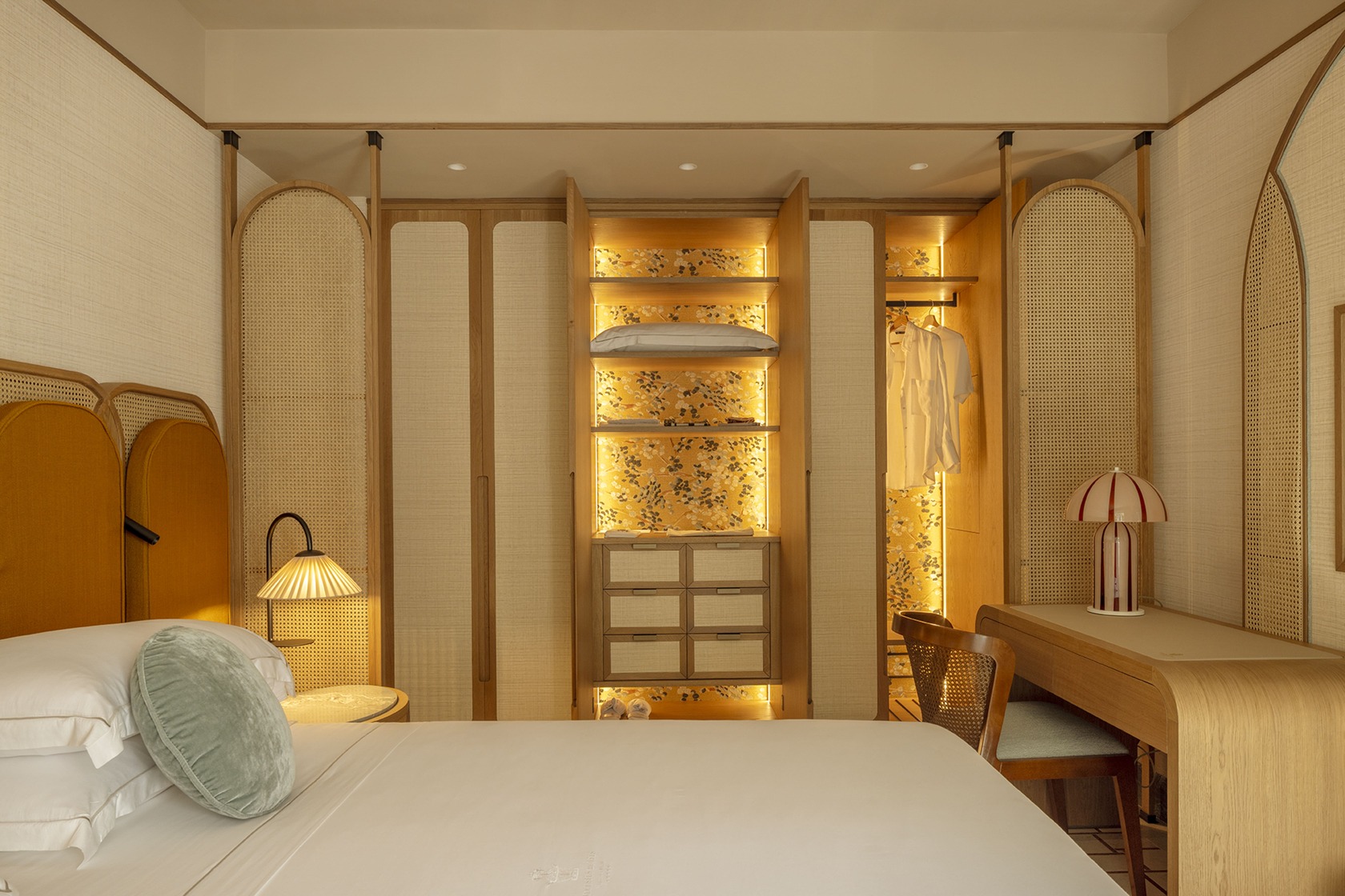 Materials such as velvet, woven textures, and lacquered woods are used to create tactile depth, while furnishings like the Leggera chair by Giò Ponti for Cassina add iconic clarity to workspaces and reading corners. Every room evokes a dialogue between eras, a symphony where every note is intentional. This dedication to detail extends beyond decor into the very philosophy of hospitality. Villa Radici is more than accommodation – it is an experience of habitation, one that reflects the Augustus Hotel & Resort’s pioneering model of “ospitalità diffusa.”