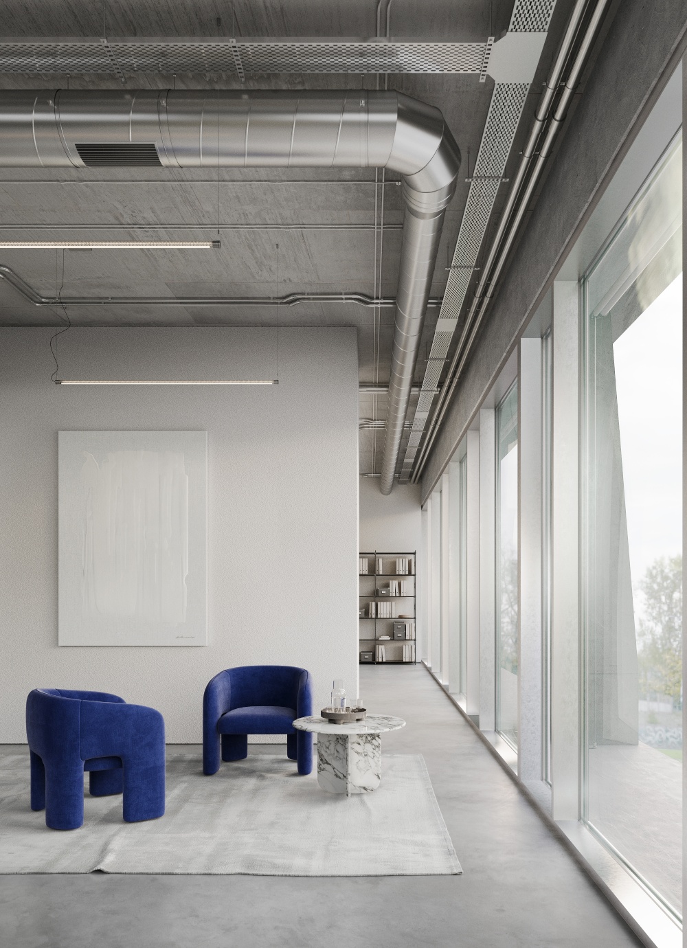 The interior aesthetic follows the architectural concept of purity, featuring tactile materials and soft-lined furnishings, with a singular chromatic highlight: blue, symbolising water as a key element of the research conducted within. Spanning seven above-ground floors and two subterranean levels, the 30,600 cubic metre volume is a bold step forward in sustainable architecture. With completion of the design phase imminent, Trilitica is poised to become a benchmark in carbon-neutral construction, aligning with NOI Techpark’s mission of urban regeneration and sustainable innovation.