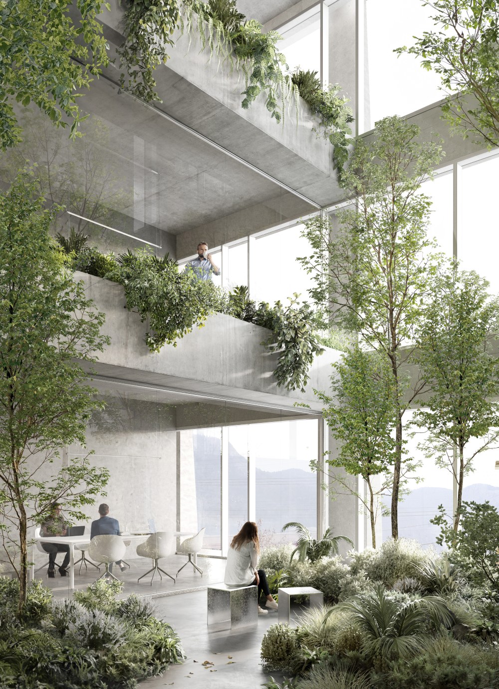 Sustainability is at the heart of this project, meeting the International Living Future Institute’s Zero Carbon certification for both Operational and Embodied Carbon. The building will rely entirely on renewable energy, both on-site and off-site, while its material selection prioritises low-carbon solutions, including recycled-content concrete, steel, glass, and dry-assembled wall systems. A rigorous environmental analysis has guided every aspect of the design, ensuring carbon emissions remain below 500 kg CO2e/m². In addition to structural innovation, Trilitica fosters human-centred design principles. Natural light floods the interiors through expansive openings, while internal courtyards with lush vegetation create biophilic spaces that enhance well-being. Certified under the ‘my green lab’ programme, Trilitica will implement sustainable laboratory practices, reducing waste, water, and energy consumption.