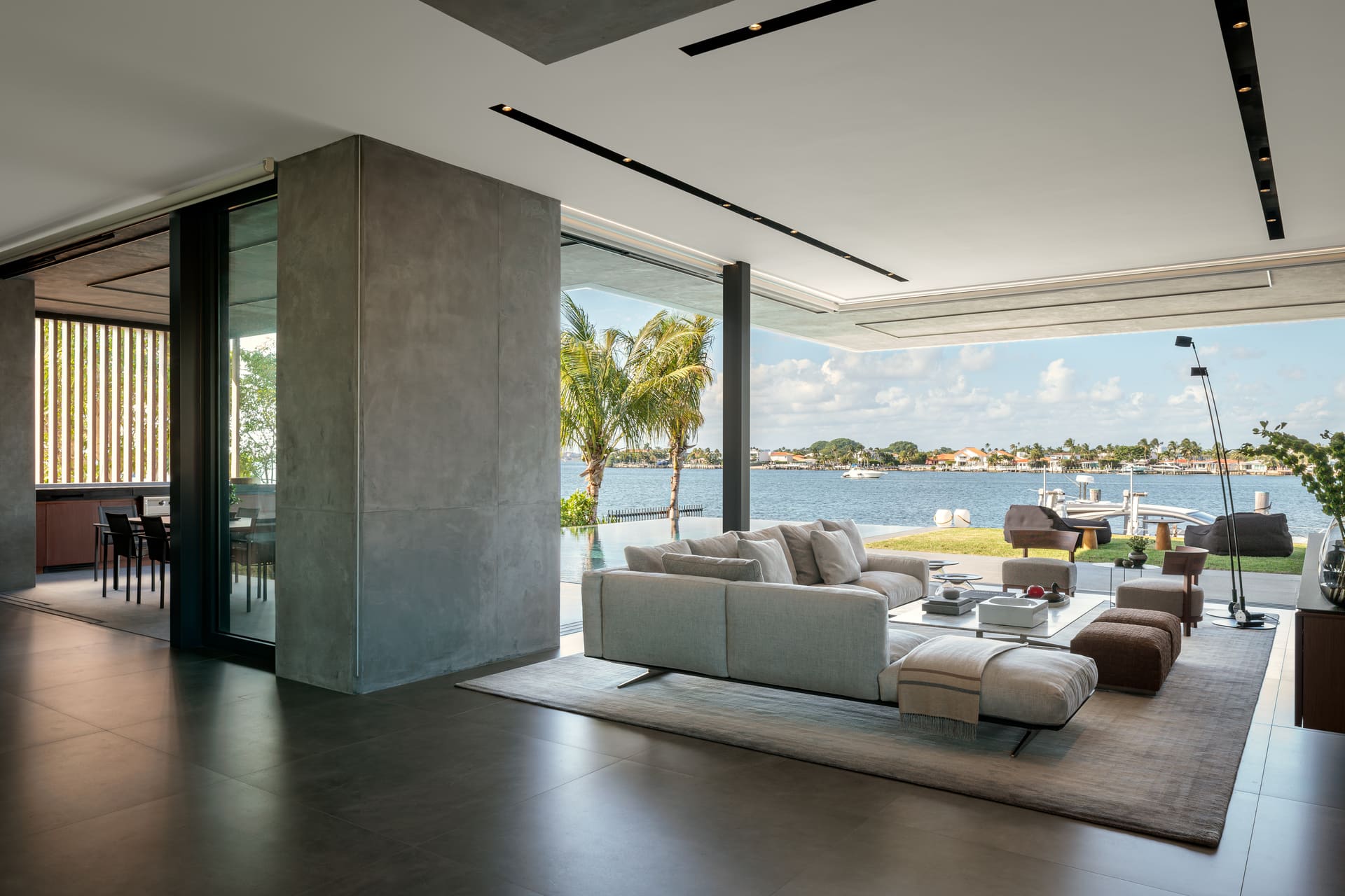 According to Elizabeth Starr, AIA, Partner at STRANG, “This Miami Beach residence reflects the client’s aesthetic sensibilities and appreciation for modernism and minimalism, while thoughtfully responding to its coastal location, the challenges of sea-level rise, and the evolving landscape of the area.” The statement highlights the project’s attempt to reconcile architectural clarity with environmental realities increasingly central to South Florida design.
