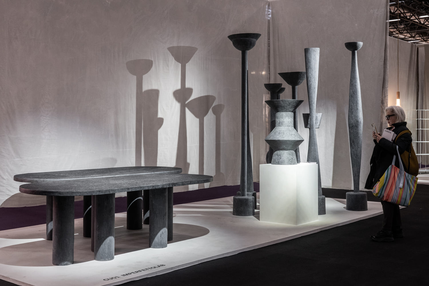 At the entrance, In Materia welcomed visitors with the scent of wood and earth, the texture of stone, the coolness of glass. People moved among pedestals and worktables as if stepping into a suspended workshop: fingers grazing fibers, eyes tracing curves, children’s small hands brushing alongside those of experienced designers. A silent dialogue unfolded – some took notes, some captured photographs, others simply stood still, absorbed by a sculpture of light or a familiar object transformed into art.