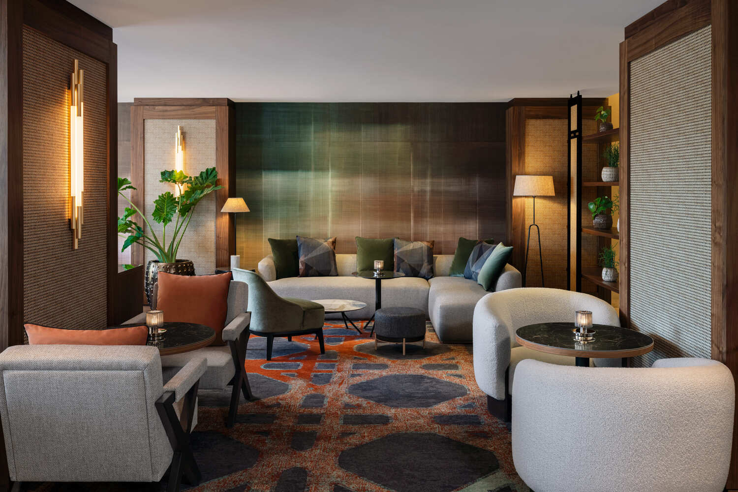 Public spaces carry the same narrative of connection. The new OXBO restaurant and bar place the river at the centre of both menu and mood. Regional produce and seasonal ingredients form the backbone of the kitchen, while the terrace allows guests to eat almost at the water’s edge. The bar’s design borrows from the silhouettes of riverside cranes, recasting them in polished brass, copper and walnut. Dark bronze arms support a display structure that serves cocktails, beer and coffee with equal ceremony. The intention, as THDP co-founder Nicholas J Hickson notes, was to enhance both function and atmosphere – expanding capacity while deepening the sense of place.