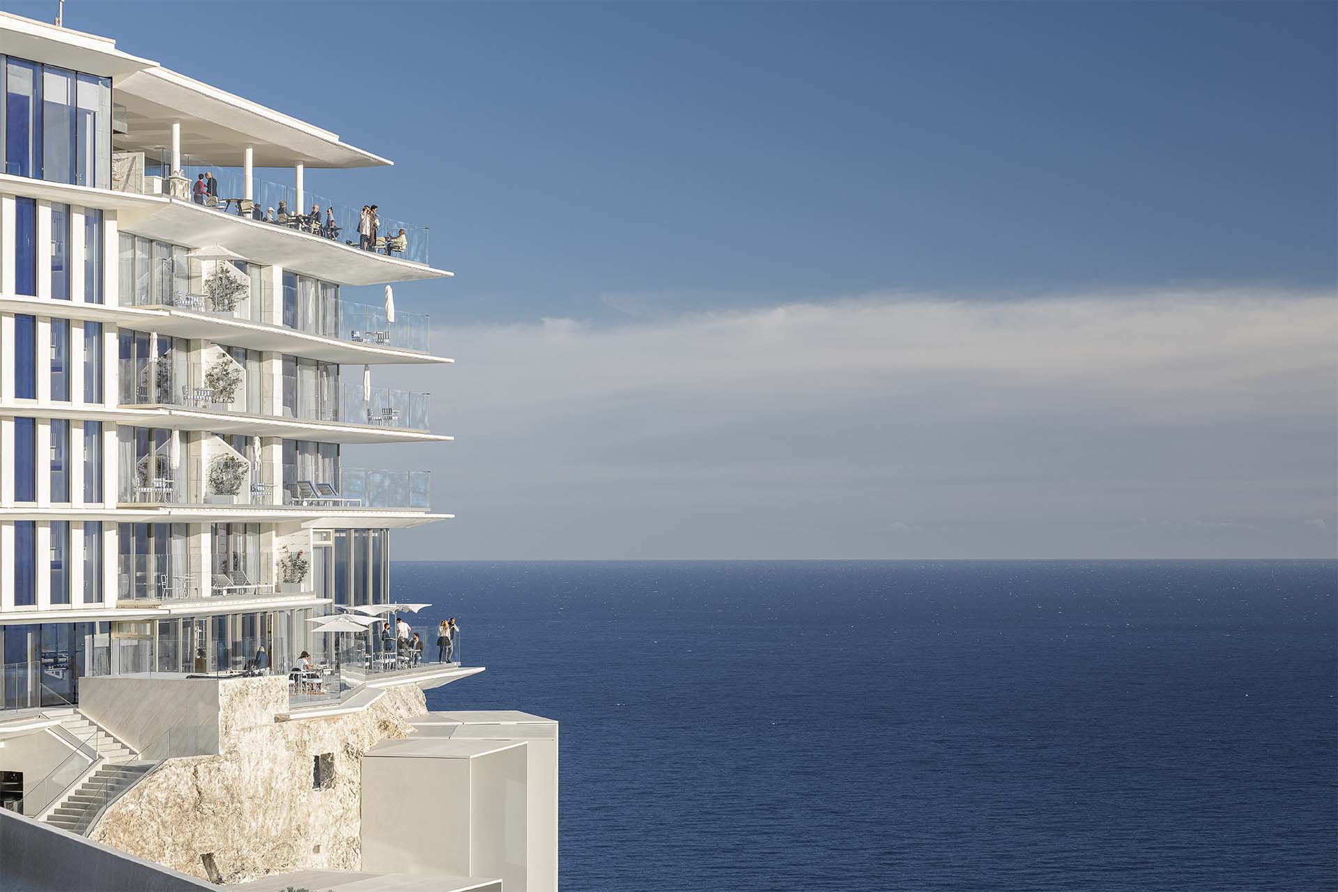 Extending over an area of 9,500 m², including 4,400 of terraces, with eighty-three rooms, of which sixteen suites, The Maybourne Riviera is a project that already impresses from the numbers of its spaces. The second element that amazes is the place where the hotel is located: a rocky spur in Roquebrune-Cap-Martin overlooking the Mediterranean and offering, from the top of its three hundred meters high, a 180 degree view of one of the most sumptuous panoramas of the French Riviera. It is therefore no coincidence that The Maybourne Riviera has been ranked the best hotel in France and has reached the 26th position at The World’s 50 Best Hotels 2023 awards.