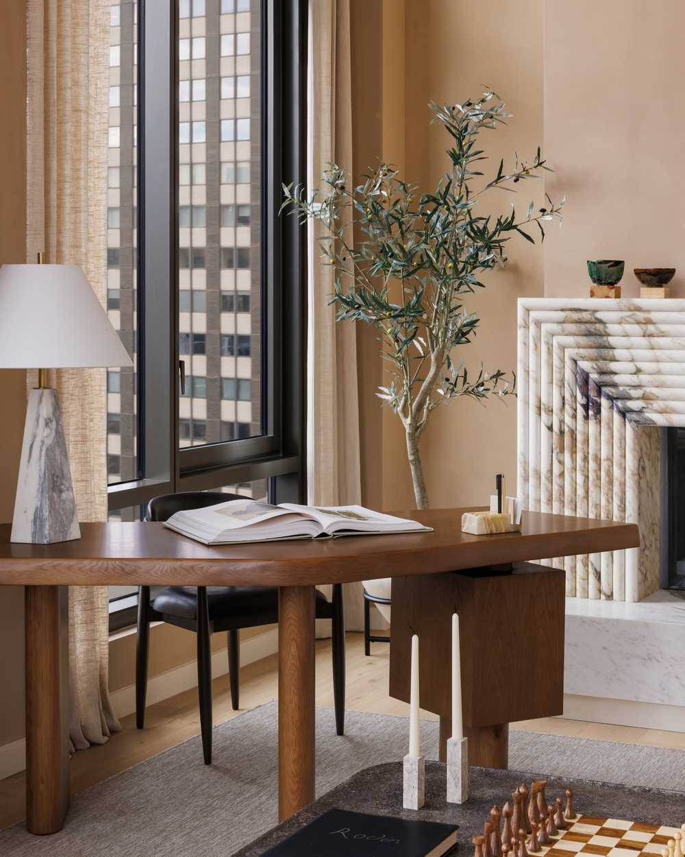 Art serves as a structural element within Penthouse B. FrenchCALIFORNIA collaborated with ONISHI GALLERY and Creative Art Partners to curate a collection that spans East and West, reflecting Neri&Hu’s global modernist sensibility. Limestone, oak, linen, and bronze become the framework for works ranging from abstract luminosity to ceremonial presence: David Stanley Hewett’s golden Resolute (2024) and Ōhi Toshio Chōzaemon’s copper-and-amber vessels establish a contemplative rhythm throughout the space.