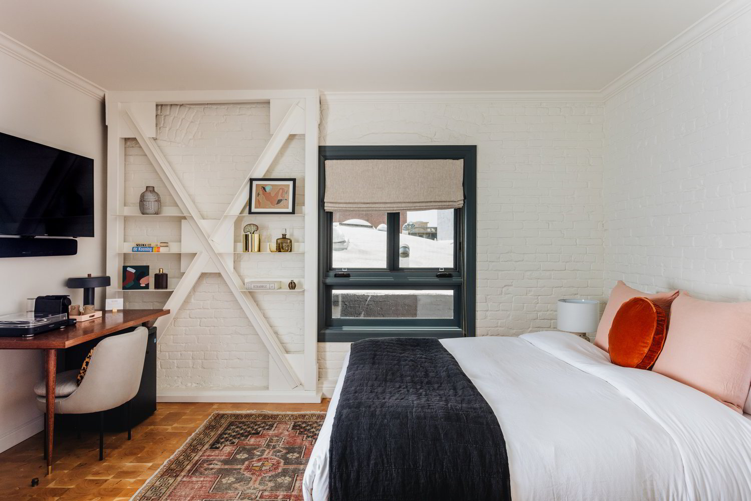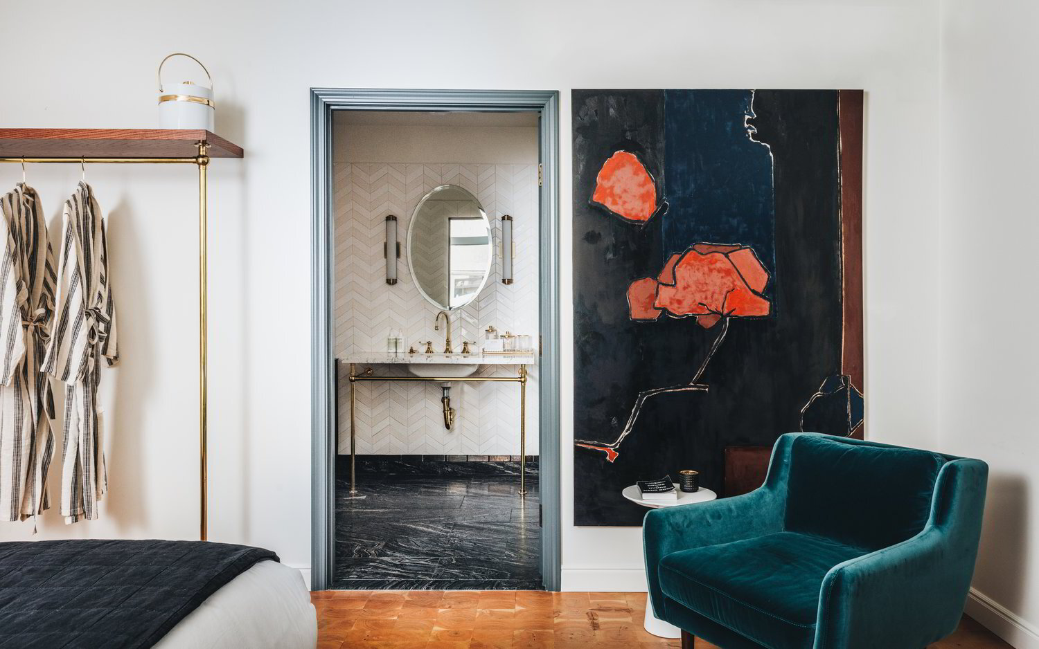 As for the specific layout and design of eleven rooms of the hotel, it is interesting to note how the music concept is present here as well. In fact, just like a perfect album, each room is designed according to a different sound. The concept, designed by David Wick, in collaboration with Tiffany Howell of Night Palm Studio, draws heavily on music and NY’s well-known Chelsea Hotel, as they are meant to be more like small apartments than rooms. The furniture is a striking mix of custom made pieces, unique vintage furniture, rare objects, art and music by local designers and musicians. Finally, Andrew Savage, singer of the band Parquet Courts and Grammy Nominee for his art and design in “Best Recording Package” category, was commissioned by Neupert to create original paintings for each room and for the public areas. In accordance with the project’s specific concept, the bar features a modern and elegant look, with dark wood chevron paneling, textured wall coverings, a lush gold velvet stage curtain, gold deco pendant lighting and accents, a brass top, marble tables, and tufted leather seating. Moreover, in order to provide its guests unique live music experience, it is equipped with studio quality sound and sound-proofing.
